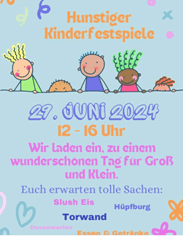 Bei Superwetter war es zeitweise richtig voll und die Slush-Eismaschine konnte gar nicht so schnell Eis machen, wie es nötig war. Es gab Pommes, Würstchen, Waffeln und Getränke. Die Zumba Kids von Gaetana Diehl hatten einen fetzigen Auftritt. Die freiwillige Feuerwehr Hunstig war mit dem Löschwagen da und die Kinder konnten sich bei einem Löschspiel als Feuerwehrnachwuchs üben. Bis in den Nachmittag hatten die Kinder auf der Wiese Gelegenheit ihre Geschicklichkeit bei Preisspielen zu testen oder einfach auf der Hüpfburg zu toben.