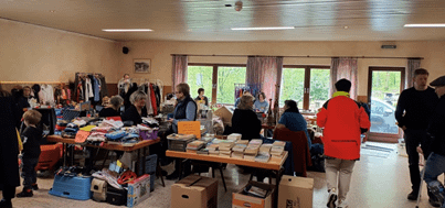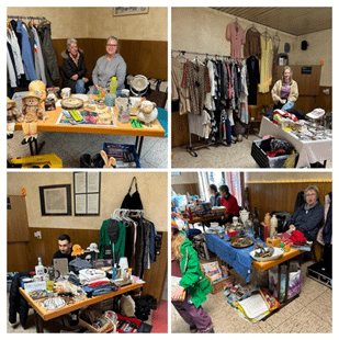 Ca. 20 Verkäufer/-innen aus Hunstig und Umgebung haben sich im Dorfgemeinschaftshaus einen Tisch gemietet, um von 10.00 bis 16.00 Uhr Kleidung für Kinder und Erwachsene, Schmuck, Deko, Geschirr, Spielzeug, Hausrat, Bücher und vieles mehr zum Verkauf anzubieten.